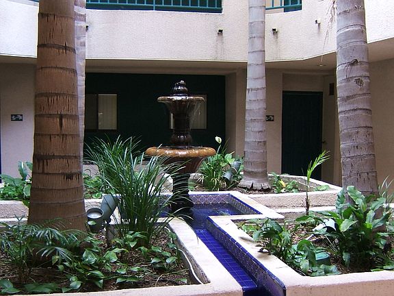 - Exterior features: 2-Car Parking in Gated Garage, Balcony, Electricity not included in rent, Fountain Courtyards, Garbage included in rent, Gas not included in rent, Heating: Heat pump, Internet not included in rent, On-Site Management, One Year Lease, Water Feature, Water included in rent