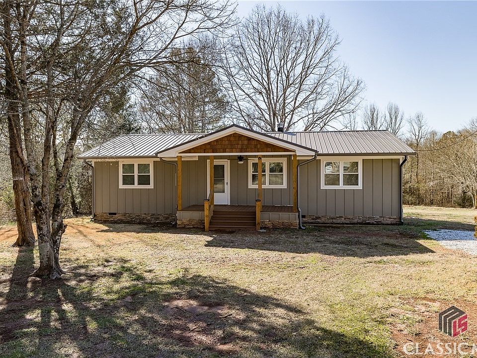 Welcome to your stunningly remodeled home in Jackson County, Georgia, where you'll be delighted by the top-rated schools that make this location highly desirable. This property offers the best of both worlds—a serene, rural ambiance, while being just a short drive (less than 5 miles) from I-85 for easy access to the city. Inside, you'll find an open floor plan that's perfect for modern living. The primary bedroom is conveniently located on the right side of the home, while the secondary bedrooms are on the left side, offering a practical layout. The gorgeous kitchen boasts granite countertops and stainless steel appliances. Find custom tile surrounds and stone countertops in the bathrooms, adding a touch of luxury to your daily routine. Step outside onto the large trex-style deck, for ideal gatheringing and relaxation for years to come. Topped with a metal roof and cement siding to ensure long-lasting durability and peace of mind. Don't miss out on the opportunity to own this beautiful home in a peaceful land setting, with all the modern conveniences you desire and in close proximity to the coming Parks Creek Reservoir! Preferred lender is related to seller, Mrs. Marla Loggins with Cornerstone First Mortgage.