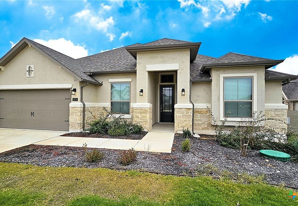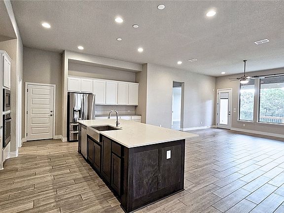 Elegant and stylish home takes residence in the Vintage Oaks at The Grove. Spacious open floor plan in split bedroom configuration with flex room, island kitchen, and dedicated formal dining room are just a few of the fantastic home features. 2 of the 4 bedrooms has shared access to the Jack & Jill bathroom. Make refuge in the primary bedroom suite with luxurious private bath, decorative mosaic tile walk-in shower, garden tub, and walk-in closet. Easily view the wooded green belt from the private backyard underneath the covered backyard porch. The beautiful community of The Grove at Vintage Oaks offers lap pools, lazy river, fitness center, tennis, sports courts, Tuscan-style clubhouse and miles of hiking trails. Home is currently tenant occupied and photos are from when it was vacant.
