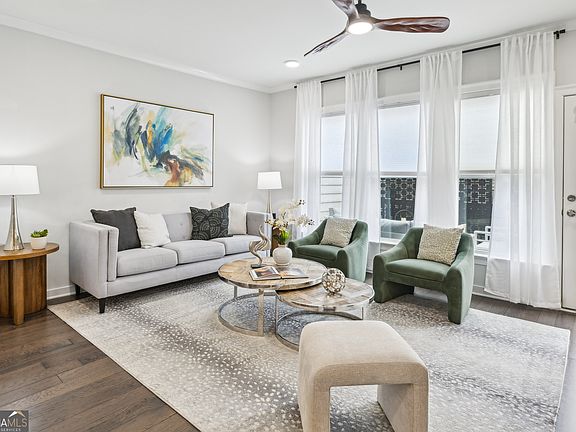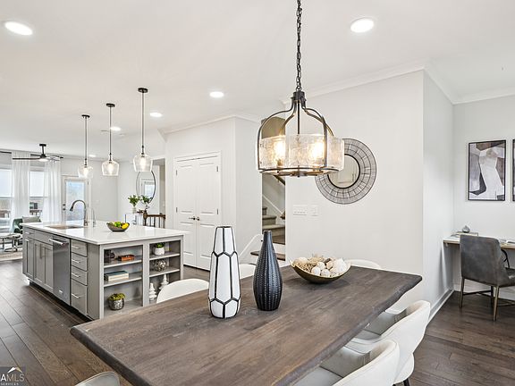Welcome to this thoughtfully upgraded Broxton Plan, ideally located in the highly sought-after Parkside at Mason Mill community-just minutes from Emory University, the CDC, the VA Hospital, and downtown Decatur. This home offers a rare blend of modern elegance and everyday convenience. Step inside to a welcoming foyer with its beautiful hardwood floors which continue throughout the carpet free home. Head upstairs to the spacious, open-concept main level is designed for both comfortable living and entertaining. Featuring upgraded lighting, ceiling fans, custom blinds, and a built-in office nook-perfect for remote work or creative pursuits. At the heart of the home, the chef's kitchen is both stylish and highly functional. It boasts quartz countertops, a large island with built-in storage on both ends, Kitchen Aid stainless appliances, a five-burner gas cooktop, pendant lighting, and a pantry. The bright and airy living room flows seamlessly onto an oversized private deck, ideal for outdoor dining or simply enjoying the fresh air. With the home facing northwest and the deck positioned towards the east, guests can enjoy afternoons on the deck comfortably shaded from the harshest sunlight. The terrace level downstairs includes a full bedroom and bathroom- offering flexible space to suit your lifestyle-whether it becomes a media room, guest suite, playroom, or second home office. Upstairs, the primary suite is a true retreat with a custom trey ceiling, walk-in closet, and a spa-inspired bath complete with a frameless glass shower, floor-to-ceiling tile, and dual showerheads. A second bedroom, hall bath with double vanity, and a convenient upstairs laundry room complete the top level with both style and function. Living in Parkside at Mason Mill means access to resort-style amenities, including a pool, fitness center, clubhouse with game rooms and a business center, nature trails, and a dog park by the creek. The neighborhood also offers direct access to the PATH South Peachtree Creek Trail, making it easy to bike or walk from Emory to Medlock Park. Just minutes from the vibrant Toco Hills shopping and dining district-with Kroger, Publix, Whole Foods, Top Spice, and Spiller Park Coffee-this area is a favorite for foodies and urban explorers alike. With easy access to Emory, Midtown, Decatur Square, and more, this home delivers the best of in-town living in a tranquil, community-focused setting.