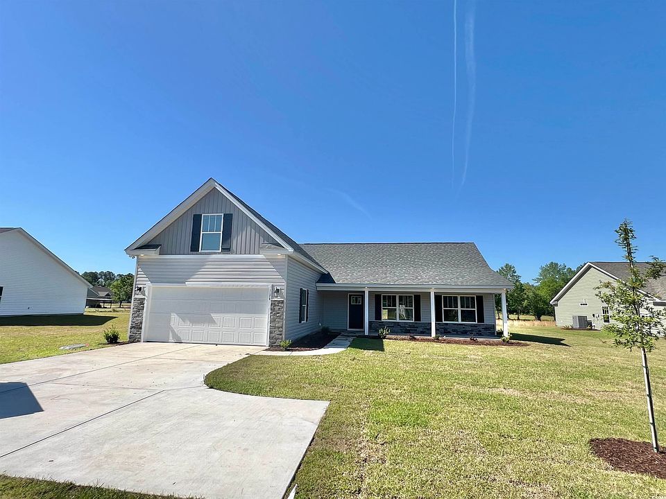 MOVE IN READY!! 4BR/3Bath home with NO HOA on a 1/2 acre lot!!! This well-appointed new construction home features HUGE front & rear porches, upgraded wood-look laminate flooring in the great room, granite countertops and stainless appliances in the kitchen, tile flooring in the bathrooms, laundry and kitchen, double vanity and 5' walk-in shower in the Master Bath, vaulted ceilings & ceiling fans in living room and all the bedrooms, and an irrigation system to keep your yard green during the summer months. On your large lot you'll be able to install your pool, park your RV, boat, trailer, and build your detached storage building! This Loris home sits away from the hustle and bustle yet offers a short drive to Little River, Cherry Grove and North Myrtle Beach and all these areas have to offer. As the new owner of this gorgeous home you'll never be far away from golfing, fishing, dining, shopping... sand, sun and fun!!! Ask your agent about seller closing incentives. Eligible for 100% USDA Financing!!
