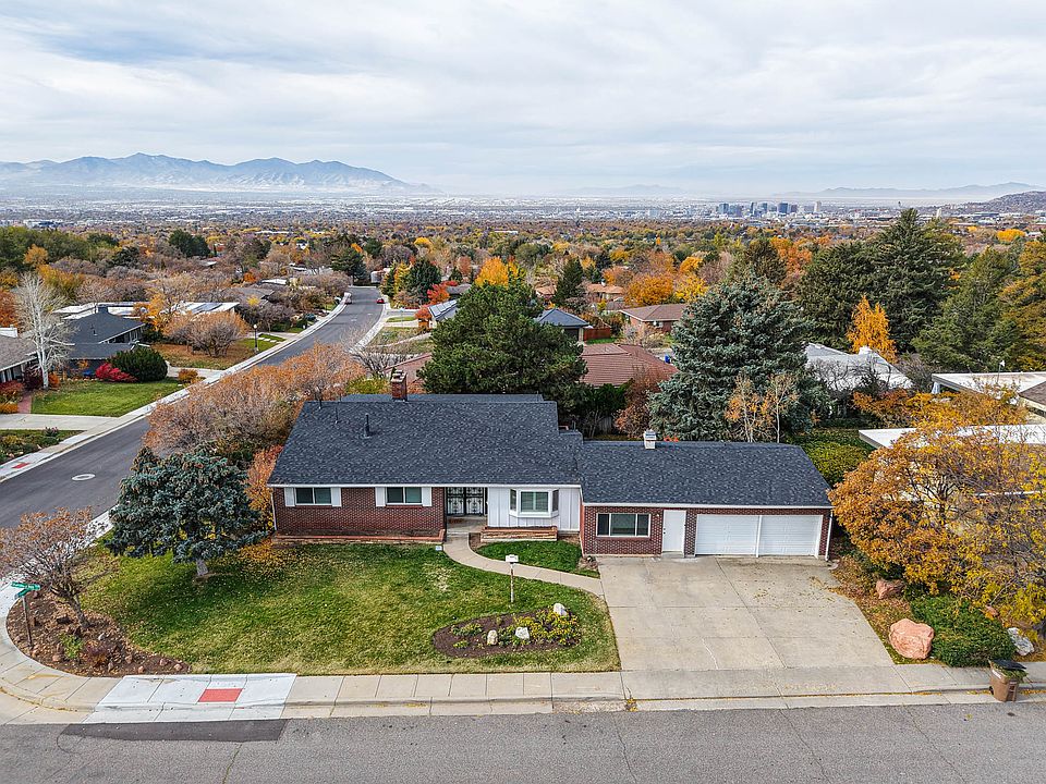 This warm and inviting home in coveted St Mary's neighborhood features over 3700 square feet, breathtaking valley views in back, & stunning mountain views in front | Pride of ownership shows as this home has been lovingly cared for by the same owners for over 60 years | Gorgeous original wood floors with a new natural stain, new paint, and brand new carpet | Wonderful layout with spacious living room with fireplace, formal dining, and large kitchen area with an additional living space & fireplace | 3 exterior doors upstairs give easy access to the covered deck that runs the length of the house | Ample sized bedrooms throughout | Awesome daylight basement with large family room, wet bar, two-way fireplace, large office/den, and two brand new bathrooms with quartz countertops, subway tile showers, and LVP flooring | Basement has two exterior doors to backyard and has great potential for a Mother-in-Law apartment or separate living space/ADU | Great storage in garage and basement |New roof March 2025 | Perfect location near Foothill, Parleys Canyon, University of Utah, and SLC