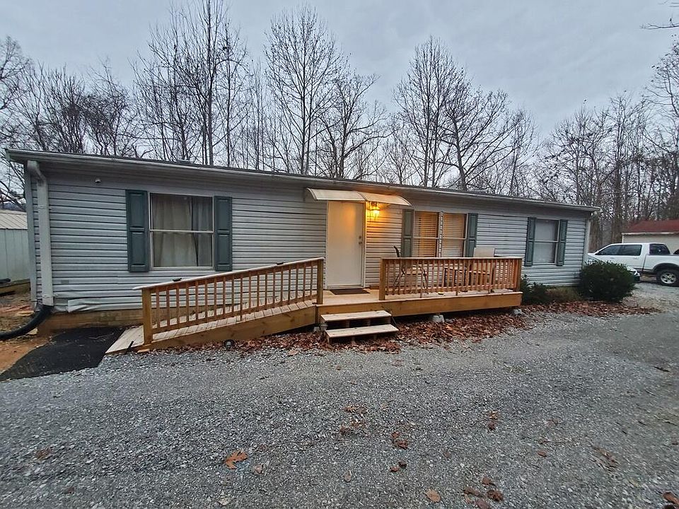 Nice 3 bedroom 2 bath doublewide on 1 acre. The location gives the feel of being secluded but only minutes to town! Enjoy your morning coffee on the front porch or watch the deer roam. Call to schedule a showing today!