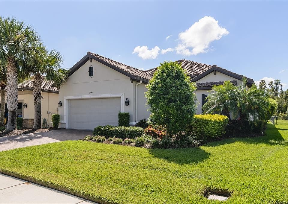 SELLER MOTIVATED - Welcome to Esplanade at Starkey Ranch, a prestigious gated community. MAINTENANCE FREE - The quarterly HOA fee includes maintenance of the lawn, bushes, and irrigation system. This beautiful Taylor Morrison, Lazio model home located on a premium OVERSIZED lot has 3 bedrooms, plus office/den or 4th bedroom, 3 bathrooms, and a 2.5-car garage and no rear neighbors. Lovely brick paved sidewalk and driveway with lush landscaping which lead you into this amazing home. The back yard is private, huge and is lovely landscaped. The foyer is large, bright, and airy. The open concept kitchen, living/dining room design maximizes space and makes it easy to entertain. The kitchen boasts: quartz counters, 42” cabinets, island with a breakfast bar and cabinets, gas stove, stainless steel appliances, a closet pantry, and a sliding door to the Lanai. The (22’X24’) Lanai is screened, with roll down blinds for added privacy and lovely brick paver floor and a gorgeous featured wall. The primary bedroom is large with a door to the outside Lani, it features: a massive walk-in closet with custom cabinetry, a huge ensuite bathroom with a walk-in shower, granite counters and dual sinks. There are 2 additional bedrooms with lots of closet space and one of the bedrooms has its own private ensuite with walk in shower, granite counter top sink. An additional Hall bathroom with granite counter and a tub and shower. A bonus room is the office/den/or 4th bedroom. There are volume ceilings and crown molding throughout this incredible home. Separate laundry room with door to the garage. The garage floor is finished with epoxy and there is an abundance of shelving. This home also comes with a HOME WARRANTY. Esplanade offers a beautiful private Club House, a resort style pool, a resistance pool or rejuvenating spa, 24 hour fitness center, billiard/card room, a kitchen, tennis/pickleball courts, playground, firepit, and a dog park. There is a lifestyle director to organize activities which you can engage in with the community. Also, the surrounding Starkey Ranch Community has many miles of trails, pools, parks, playgrounds, and a library. It is close to great schools, churches, restaurants, shopping, the Suncoast highway, Golf courses, and a short drive to Florida’s award-winning beaches. This home is a must see!!!