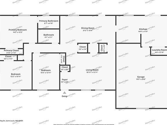 Located in Saint Louis, MO, this single-story home offers approximately 1,605 square feet of living space with three bedrooms and two bathrooms. The property includes a covered front porch and lawn area.
