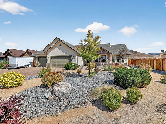 Immaculate single-level home on nearly half an acre in a quiet Spanish Springs cul-de-sac. Designed for both comfort and practicality, the open floor plan features a spacious kitchen with granite counters, roll-out shelving, and upgraded appliances, flowing into a bright great room with a gas fireplace. The primary suite includes a private sitting area, while two additional bedrooms plus a versatile flex space offer options for an office, den, or playroom. A fully finished three-car garage with tall insulated doors, zoned heating and cooling, and a 40-foot RV pad with full hookups make this property stand out. The backyard is professionally landscaped for low maintenance and offers privacy with no current rear neighbors. Move-in ready and exceptionally cared for, this home is the perfect blend of quality and function.