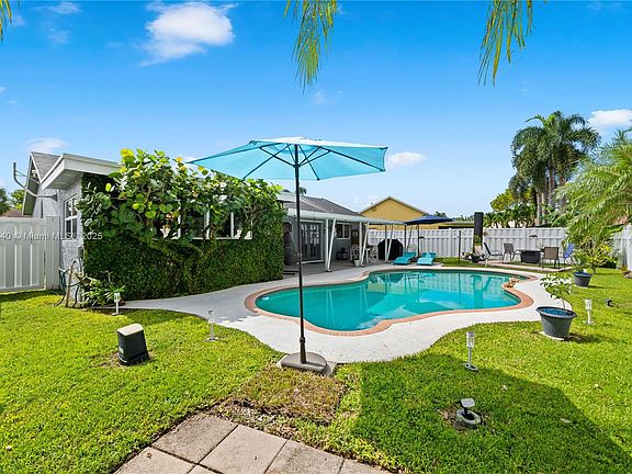 Located in west Sunrise just minutes from the Sawgrass Expressway & with no HOA, this 1-story home at 1,547 Total SQFT features 3 bedrooms, w/ an extra room off the primary bedroom, 2 updated bathrooms, free form pool, an updated kitchen w/ granite counters & backsplash, stainless steel appliances & gas stove, newer HVAC (2024) and a 2017 shingle roof. Additional features include a double wide driveway w/ pavers, 6ft PVC fenced back yard, complete hurricane protection w/ impact windows & impact rated front door, hurricane panels for the French Doors & Sliding Glass Doors, and a large covered patio w/ additional outdoor entertainment areas & complete privacy in the back yard. Close to Sawgrass, Welleby Park, Dog Park, Sunrise Athletic Complex & easy access to Sawgrass Expressway & I-595.
