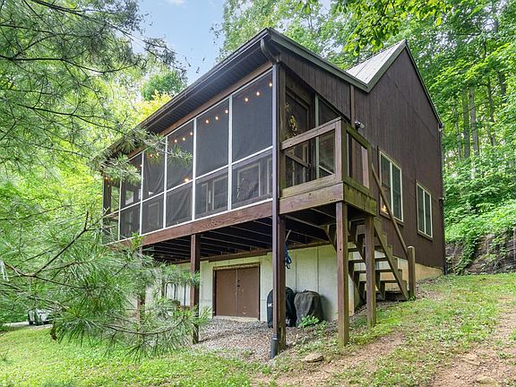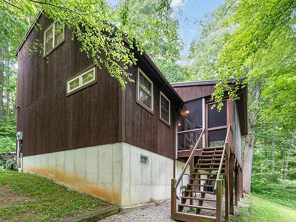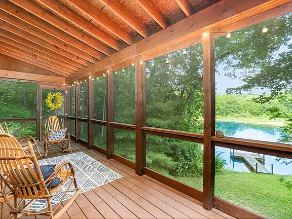 Feel the stress leave our body on your way home. Custom built on 25 acres- this is the perfect, private retreat. With 2 full bedrooms and an additional extra-large loft, and 2 full baths- it's loaded with amenities and impeccably maintained. Nestled beautifully in the trees overlooking its private 3/4-acre spring fed well stocked pond and dock, it also boasts a pasture, a wooded hillside, and a creek. The natural woodwork, vaulted ceiling, full basement for all the toys, and inviting screened in 23 ft porch complete the feeling that every day spent here is a vacation.