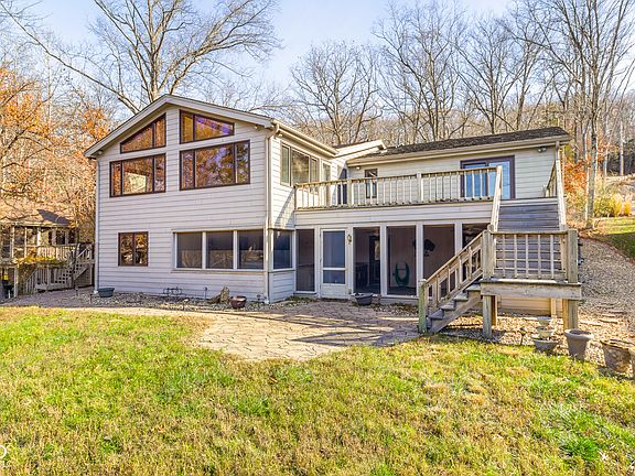 Welcome to your dream lakefront retreat on pristine Grandview Lake! This stunning ranch home offers 4 bedrooms, 3 full bathrooms, and 3,780 sq. ft. of beautifully designed living space, located on a peaceful no-wake cove perfect for swimming and water activities. With cathedral ceilings and abundant natural light from multiple skylights, this home radiates warmth and spaciousness. Key Features: * Direct access to Grandview Lake with a private dock, complete with a powered boat lift and covered lift cradle. * Outdoor Living: Enjoy breathtaking lake views from the 24x14 upper Trex deck, or relax in the 13x16 screened-in hot tub area adjacent to the screened in 24x14 kitchen with built-in gas grill. * The open interior features a 15x27 great room and formal dining, both with cathedral ceilings and solid wood flooring, and a spacious sunroom with views of the lake. * Finished walkout basement includes a large 25x24 family room with a cozy brick gas log fireplace capable of heating the home, a rec room perfect for gaming or a pool table, a 4th bedroom, and a bonus room for additional storage. * 3-Car Heated and Cooled Garage: Spacious and convenient, ideal for storage and hobbies year round. * Additional Amenities: Covered front porch for peaceful morning coffee. This lakefront gem combines luxury, comfort, and endless recreational opportunities. Don't miss out on this unique opportunity to own a home in one of the most sought-after locations -- Grandview Lake! Schedule your private showing today.