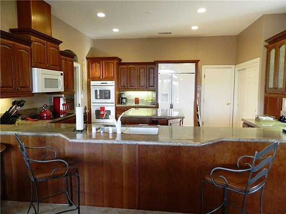 Custom home with so much to offer. Cherry flooring and cabinets, granite counters, GE Profile appliances. Architectural features thruout including art niches with puck lights, leaded glass and stained glass accents. 360 degree views. Stamped colored concrete drive, patios & sidewalks. Producing fruit trees & raised garden. Natural gas! Full attic for storage. Single level with extra bedroom & bath on second level. Den is possible fifth bedroom.Add an infinity edge pool. Prewired for security, spa & more!