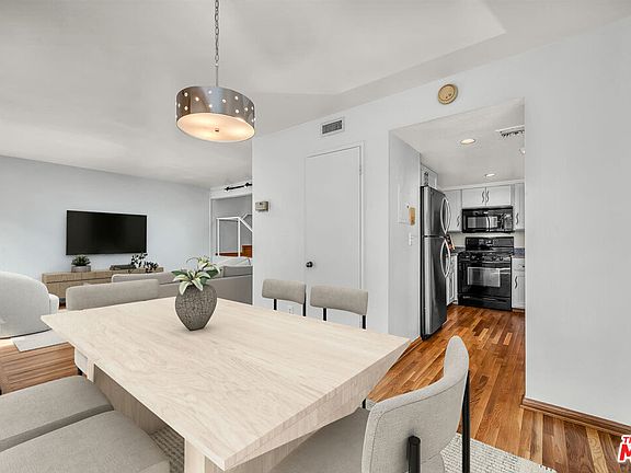 Discover a hidden gem in the prestigious Studio Village complex of Studio City, waiting for your personal touches. This townhome presents a rare opportunity for those seeking a peaceful retreat within a community renowned for its resort-style living. Step inside this newly painted interior to discover a bright and inviting living area, enhanced by southern exposure that floods the space with natural light. The inviting living room, features hardwood floors throughout the first level (recently refreshed), a charming fireplace (decorative), and seamless access to a private patio. The kitchen offers generous storage and flows effortlessly into the dining area, which opens to a second secluded patio, perfect for alfresco dining. The main level also includes a convenient powder room and an in-closet stackable washer/dryer, ensuring practicality and comfort. Ascend to the upper level, where the expansive primary suite awaits, boasting a stunning beamed ceiling, a large secondary closet, and a ceiling fan for optimal comfort. The spacious primary bathroom features a walk-in closet, a tub, a separate shower area, and a skylight, creating a spa-like experience at home. The second bedroom, also on this floor, includes a sizable closet for ample storage. Residents enjoy secure subterranean parking with two exclusive side-by-side spots. The HOA fee encompasses essential services such as basic cable TV, internet, water, security patrol, and earthquake insurance. Indulge in the complex's six magnificent pools, five soothing spas, two tennis courts, and beautifully landscaped grounds. Situated close to Studio City's vibrant shopping on Ventura Boulevard and close by Tujunga Village, world class dining, the popular Farmers Market, hiking in Fryman Canyon, plus easy access to DTLA, Hollywood, Westside; this home provides exclusivity and convenience. (Photos are virtually staged)