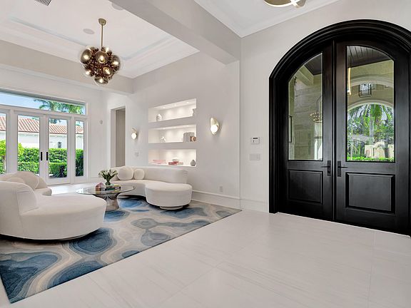 Welcome to this meticulously reimagined gut renovated residence, nestled in the exclusive Old Palm Golf Club. Every detail in this bright, expansive 4-bedroom, 4.2-bath home on a half-acre lot has been carefully curated for luxury and functionality.This residence offers a seamless blend of comfort and sophistication with highlights including a media room, office, custom chef's kitchen outfitted with top-of-the-line Wolf, Sub-Zero, and Bosch appliances, and stunning French oak floors throughout. The brand-new bathrooms feature custom European vanities with quartz surfaces, premium fixtures, and state-of-the-art Toto toilets in the master suite. There are two primary suites, each thoughtfully designed with elegance and privacy in mind. The home boasts high-end finishes, including exquisite Visual Comfort and Hudson Valley lighting, custom millwork, and European-built cabinetry across the great room, media room, office, and bar. The custom bar itself is adorned with Phillip Jeffries wallpaper, antique glass, and offers a unique space to entertain.