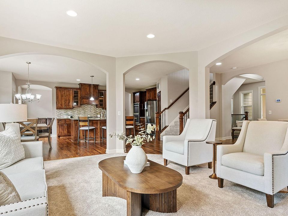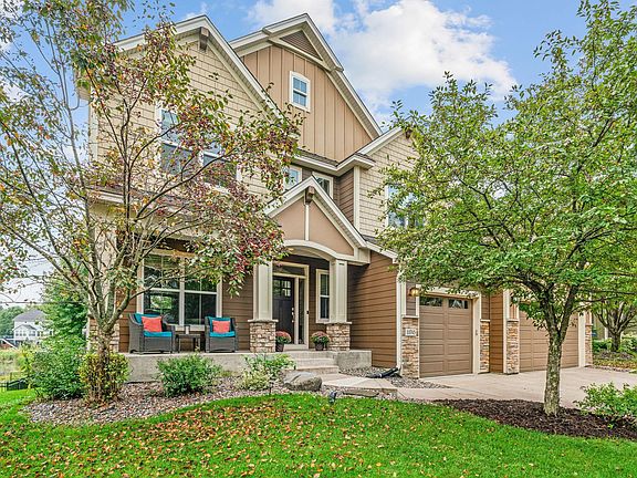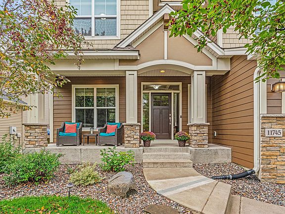 Set against south-facing pond and wooded views, this beautifully maintained home in The Lakes of Blaine offers refined comfort and everyday versatility. Fresh interior paint and new carpet in the walk-out lower level give the home a renewed, move-in-ready feel. Wide staircases add architectural presence, while the main level features a front office with French doors, a spacious kitchen with large island, two dining areas, and a light-filled sunroom. A well-organized mudroom with built-ins adds daily ease. Upstairs offers four bedrooms, a loft, and convenient laundry. The lower level includes a guest bedroom and bath, with flexible space for a gym, game room, or movie lounge. Outdoor living is elevated with a deck off the kitchen and a 33’x21’ paver patio that flows into the flat backyard—ideal for play and direct access to the woods and pond, a beloved neighborhood feature. Enjoy trails, parks, and the natural beauty that defines this vibrant community.