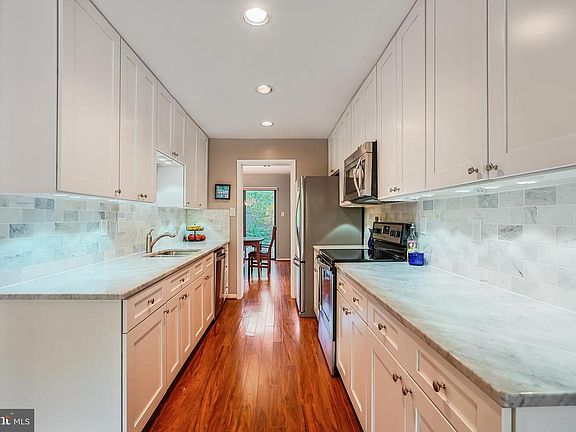Large end-unit TH in Prime Reston Golf Course in sought-after Hunters Green Cluster. Very private & spacious (2,200+ ft). Home features large windows with tons of outdoor space, a lower-level patio, main level deck and front courtyard. Upper level features 4 BR, 2 Full BA. Primary BR suite with en-suite bath, large closets. Kitchen features solid wood cabinetry, stainless steel appliances, Carrara marble counters, backsplash & walk-in pantry. Added lighting in all rooms, beautiful hardwoods in all 4 bedrooms. All updated bathrooms, endless storage, rear patio, and ample parking. Approximately half a mile from silver line metro and close to shopping, 55 miles of trails, W&OD, playgrounds, Reston Assoc amenities such as 15 pools, basketball, 52 tennis courts. Bring your kayak or paddleboard-lake privileges! Conveniently located near the Reston Community Center, Reston Town Center, even closer to the new Wegmans. Also close to Dulles Airport and major commuter roads.