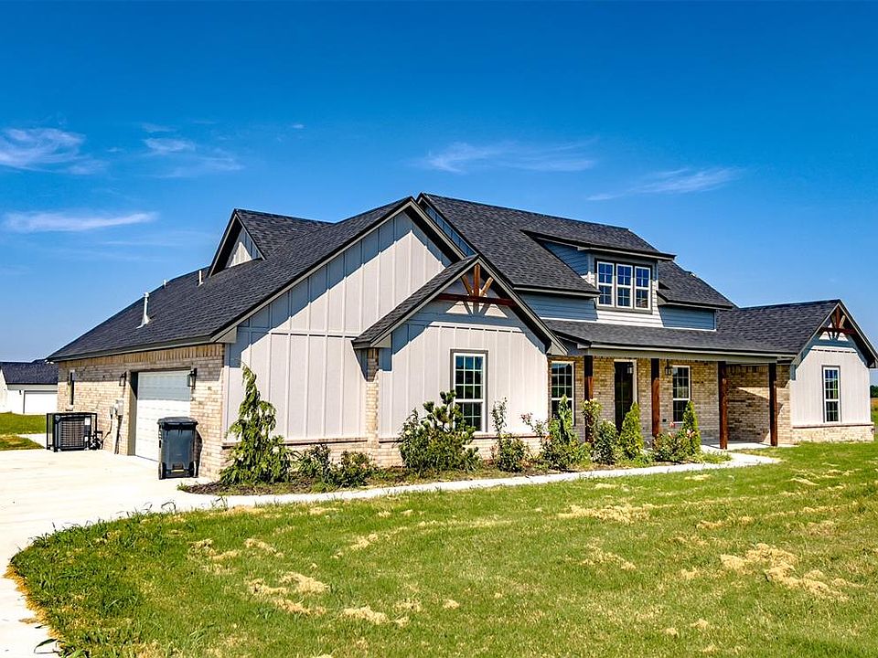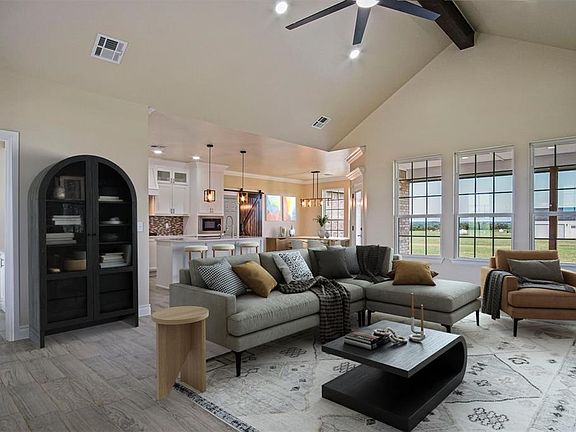 Corner Lot Beauty! Welcome home to this stunning 4-bedroom, 2.5-bathroom modern farmhouse nestled on a spacious 1.27-acre corner lot. Thoughtfully designed with both style and function in mind, this home also features a dedicated study—perfect for working from home or quiet retreat space. From the moment you arrive, you’ll be captivated by the home’s charming curb appeal, highlighted by large cedar posts and a sprawling covered front porch with lots of space for parking. Inside, the warmth continues with wood-look tile flooring throughout the main areas and cozy carpet in all bedrooms. The open-concept living room features soaring vaulted ceilings, floating shelves, and a striking stacked stone fireplace that anchors the space with rustic charm. The chef’s kitchen is an entertainer’s dream—boasting a massive island, granite countertops, gleaming black tile backsplash, stainless steel appliances, see through cabinets, and a spacious walk-in pantry. Stained wood barn doors give this home that extra farm house feel. The private master suite is thoughtfully tucked away on one side of the home and showcases tray ceilings, a luxurious ensuite bathroom with dual vanities, a garden soaker tub, a separate walk-in shower with elegant calacatta tile, and a generous walk-in closet. Additional highlights include a convenient half bath for guests, a mud bench entry off the garage, and a large covered back patio—ideal for relaxing or entertaining outdoors. Located just minutes from Highway 74, you’ll enjoy easy access to Edmond and Metro OKC while still savoring the peace and space of country living. This home blends timeless farmhouse charm with modern luxury—don’t miss your chance to make it yours! Give us a call to schedule your private showing. Buyer to verify schools.