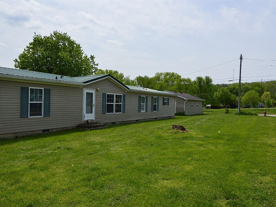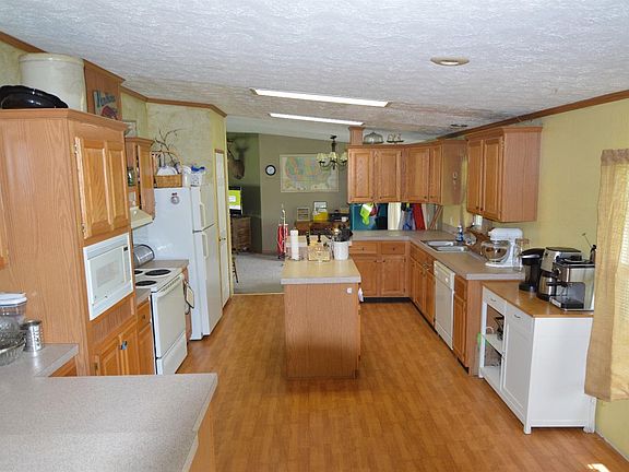 Spacious open-floor plan double wide with a wood-burning fire place, sits on over half an acre. Home comes w/4 Bedrooms, 2 Bathrooms, Master bath has a double vanity, shower and garden tub. In addition this home has an over sized detached 1 car garage. Home also includes Metal Roof, 32X12 Covered Deck w/Metal Roof, fire pit, and a large 20X70 garden area. 1 Year Home Warranty included.