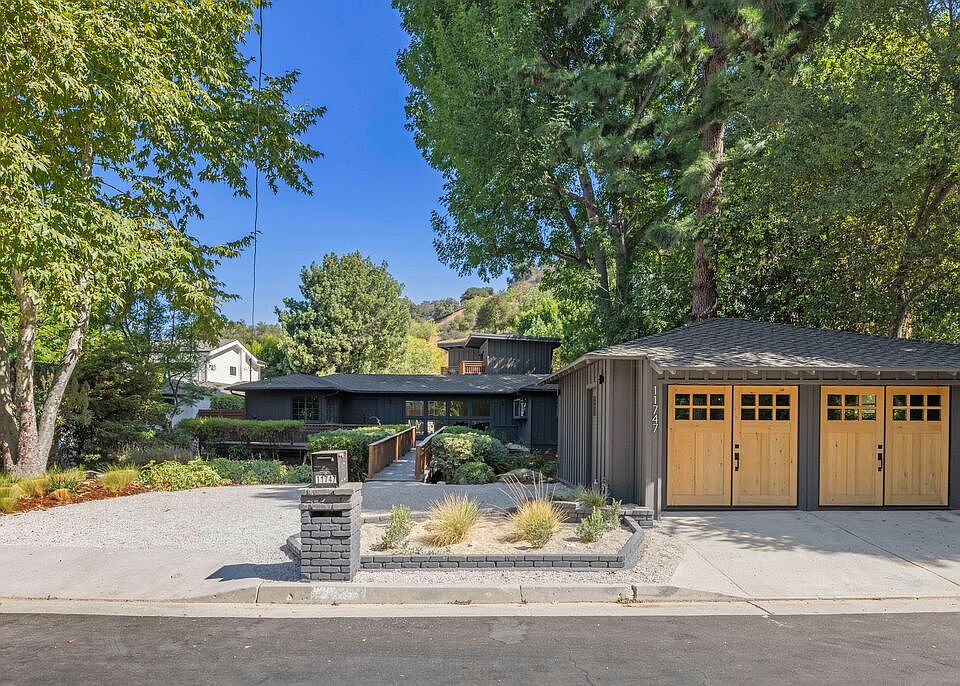 Step into your own private sanctuary in the highly sought-after Carpenter School District! This beautifully remodeled 4-bedroom, 3-bathroom home features an additional 1-bedroom, 1-bathroom guest house and a finished garage flex space, perfect as a gym, office, or creative studio. From the moment you arrive, the property sets a magical tone, surrounded by serene gardens and towering trees. You'll cross a charming little bridge to reach the front doors, where the home's character begins to unfold. Inside, every detail has been thoughtfully designed. Lime-washed walls create a timeless, organic feel, complemented by engineered hardwood floors throughout. The living room features stunning floor-to-ceiling windows that flood the space with natural light, creating an airy, uplifting atmosphere. The chef's kitchen boasts custom cabinetry and marble counters, with a charming breakfast nook tucked in the corner. Each bedroom has been meticulously designed, with none sharing walls, offering ultimate privacy for everyone in the family. The luxurious primary suite includes a private patio overlooking the gardens, a beautiful custom vanity, a soaker tub, and an oversized walk-in shower. The guest house offers a spacious living room with a cozy fireplace, plus a separate bedroom complete with a walk-in closet and full bath - ideal for visitors, extended family, or a private home office. Outdoors, the thoughtfully landscaped grounds provide a completely private retreat, ideal for relaxation or entertaining. Located just minutes from Sportsmen's Lodge and all the best shops and restaurants along Ventura Boulevard, this home perfectly blends an idyllic private sanctuary with unmatched convenience.