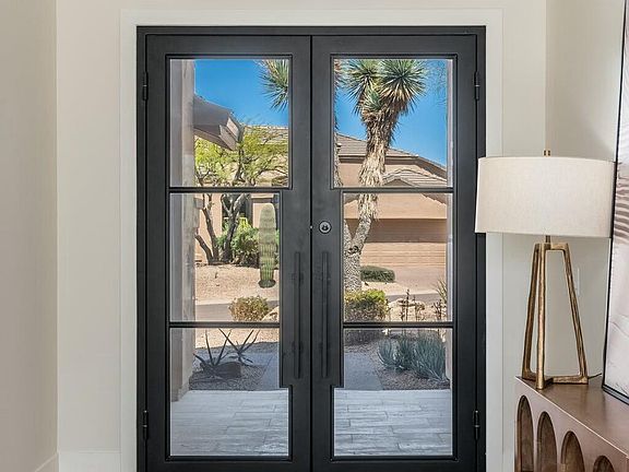 From the moment you arrive you're immersed in the natural landscape of towering boulders, beautiful desert surround & majestic mountain views uniquely visible through the modern French doors; the custom designed entry with smart-glass technology was necessary to capture the dramatic desert framed backdrop while enabling complete privacy with just the touch of a button, all without compromising style.