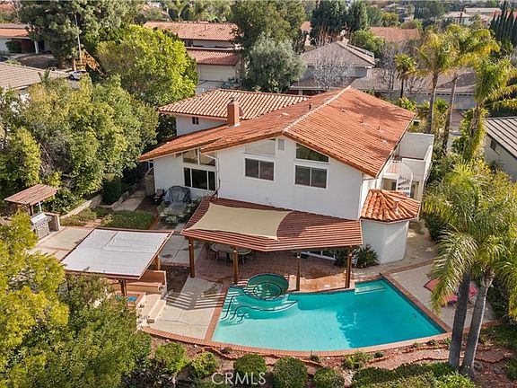 Absolutely gorgeous 4 Bedrooms, 3 Bathrooms, 2,856 Sq.Ft. of Living Space, with a 3 Car Garage, on a 15,642 Sq.Ft. Lot with pool and view! Double door entry leads you into the first level with a dining room, light and bright family room with smooth ceilings, recessed lighting, sliding doors out to the backyard, and is open to the kitchen. The kitchen features upgraded granite countertops, upgraded cabinets, wine fridge, stainless steel appliances including a Kitchen Aid gas stove and oven, built-in microwave, Bosch dishwasher, stainless steel farm sink, and bay window! Expanded 4th Bedroom (with built-ins) is downstairs and is perfect for an office or second master bedroom. Remodeled downstairs bathroom with shower and access to outside (perfect for going in and out to the pool). Elegant formal living room with fireplace, vaulted ceiling, recessed lighting, and view to the backyard. Stunning Master suite with wet bar, vaulted ceilings, ceiling fan, balcony with spiral staircase, expanded bathroom area with tons of cabinets and drawers, and two walk-in closets. Master bathroom with two separate sink areas, shower and separate tub. Spectacular backyard with patio cover, pool and spa, gas fire pit with built-in seating, BBQ area, and view to the West perfect for beautiful sunsets!