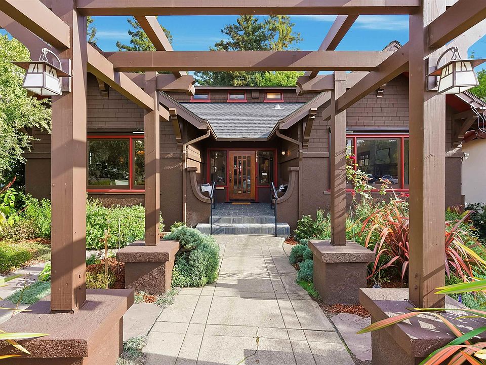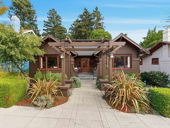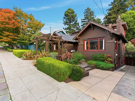 This Berkeley brown shingle knows how to make an entrance! From its inviting architectural symmetry to its thoughtful garden design, you'll feel drawn to the stately entryway of this craftsman stunner. By the time you’re inside, you'll have begun envisioning your life here. Light floods window to window, with views from every room. Beautifully finished white oak floors and fir trim exude warmth and elegance. With four bedroms, two baths, and a level-out basement full of possibilities, the layout is flexible to your needs. Its spacious dining and living rooms have finely made, built-in cabinetry and tastefully molded ceilings. The bright, airy galley kitchen with an eat-in space opens to terraced decks, overlooking a lovingly tended garden. Whether you’re entertaining, enjoying time with loved ones, or working, this is your ideal home base. Situated in an extraordinarily walkable neighborhood between Solano and Hopkins, it's thought by many to be the most attractive house in North Berkeley, but just wait till you see the yard! Flagstone paths, pergolas, flowers, shrubs, and trees abound. Venture through the gate to your own creekside redwood sanctuary -- a place for nature-loving folks of all ages to relax, play, and dream. Open Sat/Sun 2-4pm.