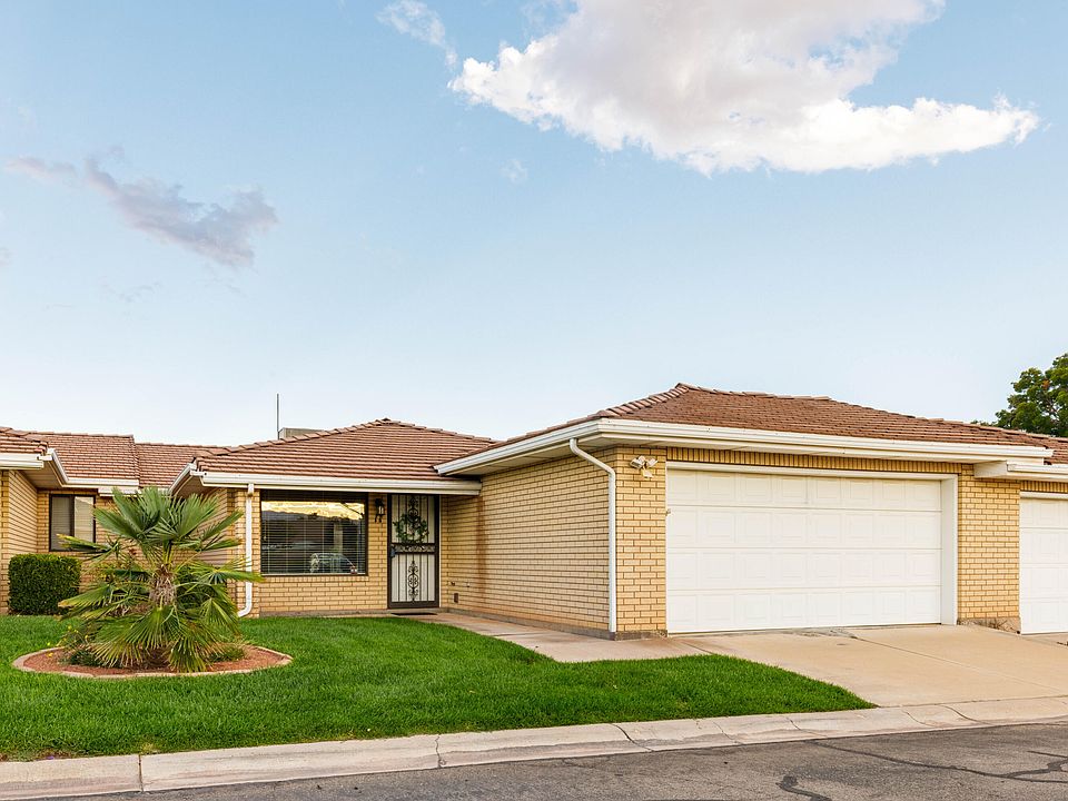 Spotless 55+ townhome. Well Maintained. Newer Hot Water Heater (2024). Heat Pump has been replaced. Relax in the backyard on shady east side with turf and lush landscaping. Primary suite with walk-in closet, step in shower and natural light. Kitchen has plant shelves for flowers, herbs or other plants, Reverse Osmosis, extra pantry storage, newer dishwasher and newer refrigerator. Newer Washer/Dryer and water softener. All bedrooms have ceiling fans. Garage has second refrigerator, cabinets for storage, belt driven garage door opener and keyless entry. Enjoy indoor community pool at your leisure. HOA also covers your water, front yard maintenance and many other benefits. Great location near Harmons grocery, hospital and central St George. Buyer to verify all information.