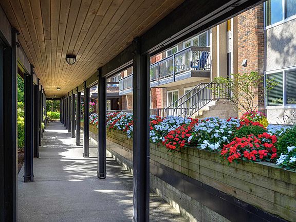 Welcome to Century House! This beautifully maintained building offers lush gardens and is situated in one of the best locations in Tsawwassen. This top-floor 1-bedroom condo features 799 sq.ft. of living space with in-suite laundry. Updates include walk-in soaker tub, fresh paint, brand new fridge & dishwasher. The interior doors, vinyl windows & patio sliding door have been replaced as well. Enjoy great amenities including a social lounge, games room with pool table, sauna, and library. All in an unbeatable central location, just a short walk to town center, Beach Grove Golf Course, Centennial Beach, parks, shopping & transit.