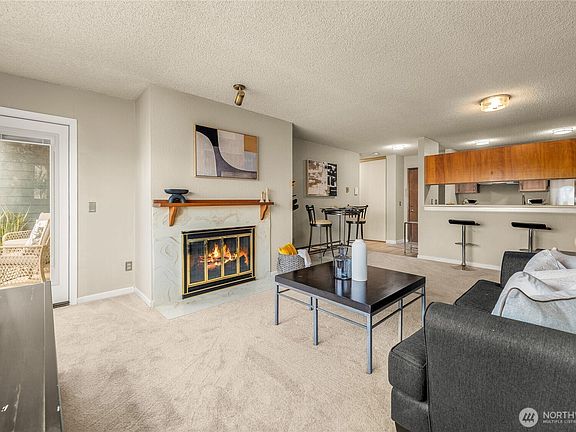 Welcome Home to this recently updated spacious condo with an exterior envelope remodel. Secure building with intercom access and one covered, reserved parking space. Cozy unit with new modern appliances, beverage refrigerator, brushed nickel fixtures, new plush carpet, light Lvt flooring, paint, wood fireplace and balcony deck off of the bedroom. Excellent location near several grocery stores, Coulon Beach Park, The Landing, New Castle Commons, local parks, library, bus routes and easy access to 405 and Coal Creek. There is a shared lobby, secure mail area, elevator and community room. No rental cap with high owner occupancy. The work has all been done for you and paid for by seller, it is turnkey and ready for you to call it home!