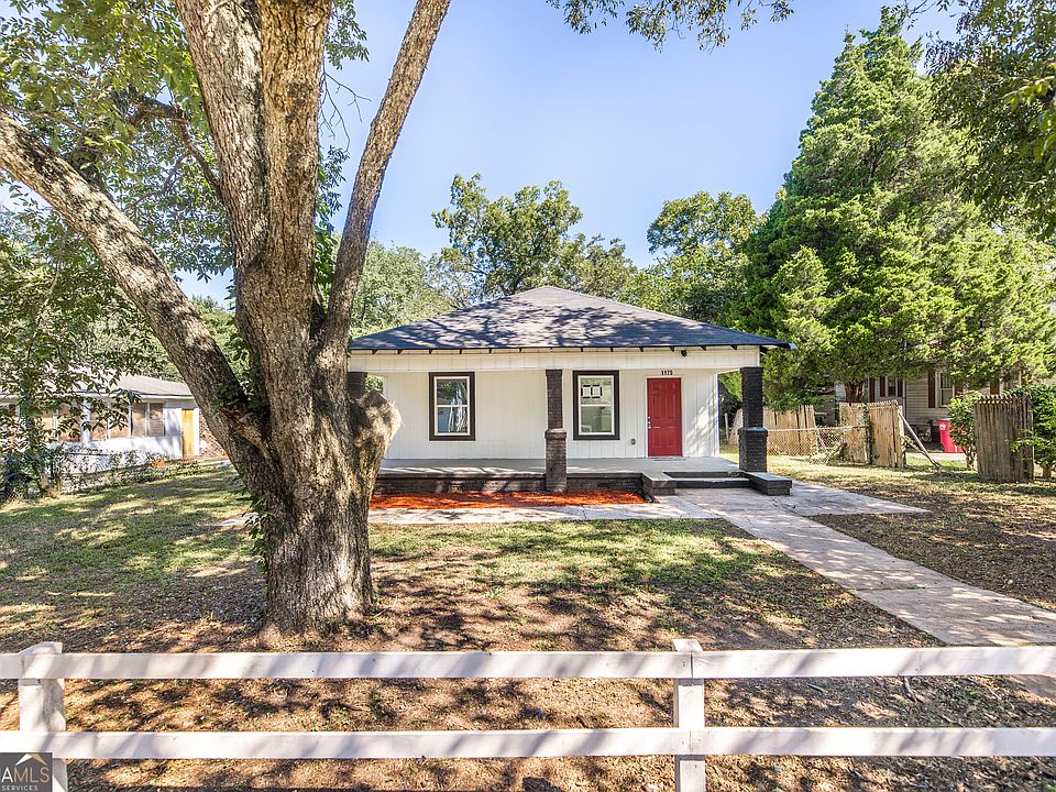 Fully renovated and move-in ready, this 4-bedroom, 2-bath home combines classic charm with modern finishes. The open floor plan features fresh LVP flooring, neutral paint, and abundant natural light throughout. The kitchen offers brand-new white cabinetry and a seamless layout flowing into the living area, providing a blank canvas ready for your personal touch. The primary suite boasts a spacious bath with dual vanities and a fully tiled shower. Outside, enjoy the inviting covered front porch, fresh landscaping, and a detached garage that enhance both curb appeal and functionality. Conveniently located with quick access to the interstate, this turnkey property is ideal for a wide range of buyers.