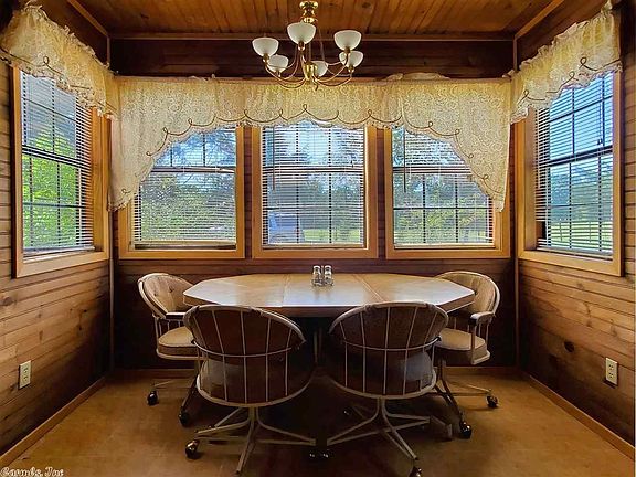 This Log style home has 5 private bedrooms, 3 baths, 2547 sqft and sits on 2 acres. The lower level has 3 of the bedrooms separated by a 'jack-n-jill" bathroom and a small loft area. The upper floor has 2 bedrooms, large storage room, walk-in closets, wood deck with a view of the pool and a spacious bathroom. The 324 sqft front porch, 432 sqft back porch and separate utility building complete this nice home.