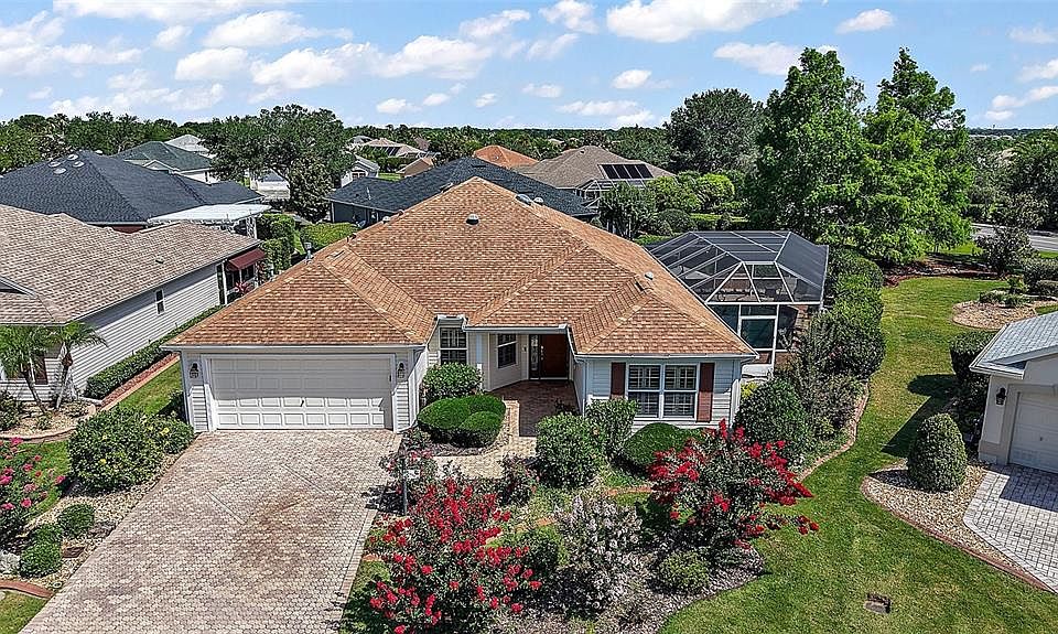 Welcome to 1175 Johnston Path, a beautifully maintained, expanded Camellia (Gardenia) model pool home in the highly desirable Village of Caroline. Perfect location, just six blocks from Lake Sumter Landing and just minutes from shopping, dining, and entertainment, including Aldi, Costco and Hobby Lobby. This 3-bed, 2-bath home blends comfort and style with a long list of thoughtful upgrades. From the moment you arrive, you’ll be drawn in by the inviting curb appeal, featuring a paver driveway and walkways, mature landscaping, and flowering & fruit trees that create a lovely, welcoming entry. Inside, the open split-bedroom floor plan features engineered hardwood floors, crown molding, plantation shutters, granite counters, and solar tubes for abundant natural light. The kitchen is both beautiful and functional, equipped with natural gas, a pantry, slide-out cabinet drawers, under- and over-cabinet lighting, accent lighting under the breakfast bar, and a newer refrigerator. The expansive living space flows seamlessly into the expanded Florida room, including a wet bar, which then leads you to your stunning saltwater pool with waterfalls. The pool is enclosed within a large birdcage and surrounded by privacy hedges and an impressive 12-by-75-foot patio, complete with raised garden beds, an ideal setting for entertaining, gardening or relaxing. Newer kitchen tile floor and light fixtures, and an upgraded 200-amp electrical panel add to the home’s thoughtful features. The primary suite is a peaceful retreat with double, spacious walk-in closets, dual vanities, and a step-in shower. Additional highlights include a new water filtration system and water softener, 2018 HVAC system, a roof replaced in 2021, and pull-down attic stairs with extra insulation and decked storage space. Best of all, there’s NO BOND, offering added peace of mind and value. This move-in-ready pool home offers an incredible opportunity to enjoy the ultimate Villages lifestyle in an ideal central location, near 3 town squares. Don’t miss your chance to make 1175 Johnston Path your next home.