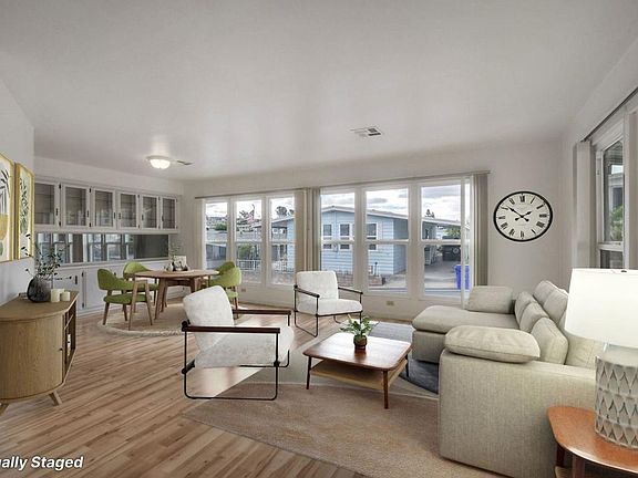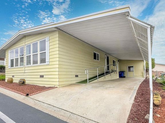 Welcome to the 55+ community at La Moree Estates! Discover comfortable and convenient living in this beautifully maintained 2-bedroom, 2-bathroom manufactured home located in desirable San Marcos, with owned land! Enjoy easy access to Highway 78 and I-15, plus resort-style community amenities including a clubhouse, pool, gym, library, RV parking, greenspace, and picnic areas. This spacious 1,536 sq. ft. single-story home features a light and open layout with a living room, family room, dining area, and open kitchen with a large island—perfect for gatherings. The interior and ceilings were freshly painted, and several new updates add to the appeal, including a newer dishwasher, oven, garbage disposal, and porch fencing. The primary suite includes a private bathroom with a walk-in tub for added comfort and accessibility. Additional highlights include laminate flooring throughout (no carpet), a ramp for easy access, and a large laundry room with side-by-side washer and dryer hookups plus extra storage. Step outside to a spacious backyard with a fenced area, ideal for a pet or private garden. The property also features two covered carports, a large shed, and additional storage space under the carport. Best of all, the land is owned—no space rent—and the home includes a 433A foundation, making it eligible for various types of financing, including VA. The HOA covers water, trash, cable, and high-speed internet, providing great value and convenience. Enjoy the active and welcoming lifestyle that La Moree Estates offers—walk to the clubhouse and pool and take advantage of all the community has to offer.