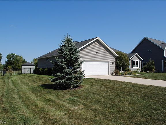 Wonderful Ranch style home in the desired Fiddlers Green neighborhood is certain to impress.  Open layout compliments today's living.  Warm living room with vaulted ceiling, fireplace and wood flooring opens to dining room and kitchen.  Gourmet kitchen is chef's dream with granite counters, stainless steel appliances and lots of cabinet and counter space.  Private split layout has the primary bedroom on one side of the home... and 2 other bedrooms with full bath on the opposite side of the home.  Primary bedroom offers large walk in closet and glamour bath with double vanity and zero entry shower.  Convenient 1st floor laundry room.  Huge basement could easily be finished offering loads of storage.  Newer Aprilaire dehumidifier.  Newer sump pump with battery backup.  Oversized 2 car attached garage.  The front and rear covered porches both offer the perfect place to enjoy the outdoors.  Fully fenced yard with shed.  You've found it... call agent today.
