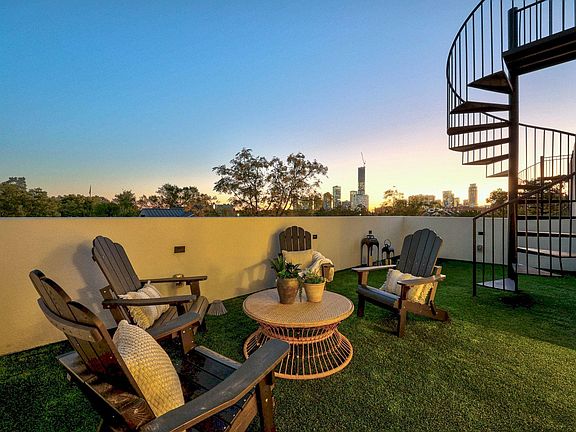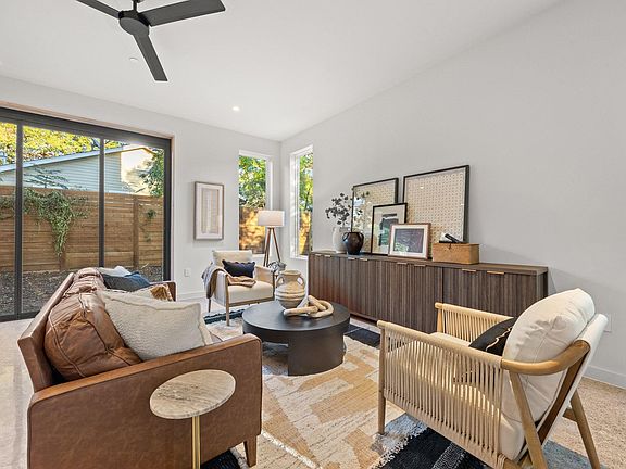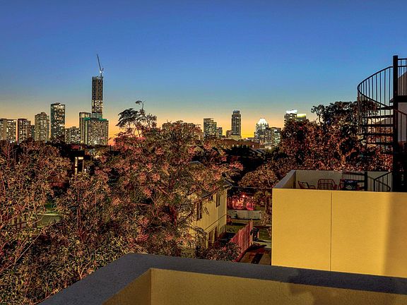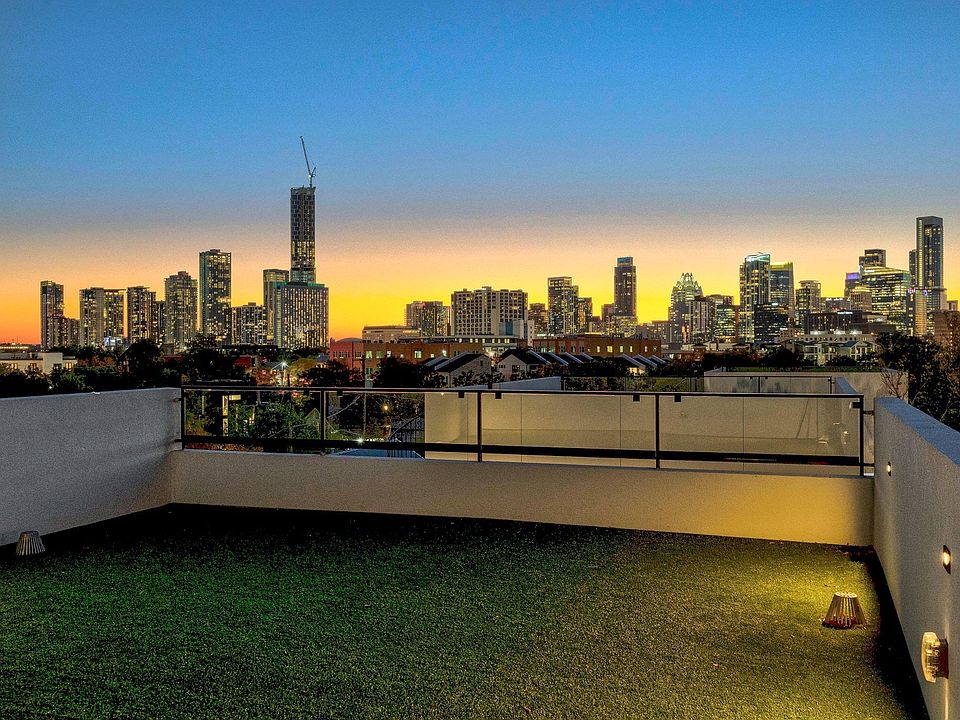 Welcome to this brand-new three-story masterpiece by J Davis Construction that redefines modern East Austin living. Designed to embrace the city from every angle, the home captures panoramic skyline views stretching from Rainey Street to the Texas Capitol, the UT Tower, DKR Texas Memorial Stadium, and every iconic landmark in between. Soon to feature a sparkling backyard pool, this residence invites you to experience a resort-style living. Inside, sun-drenched interiors showcase expansive windows and easy-to-maintain tile flooring that flows seamlessly throughout the main level, complemented by warm wood floors that add elegance to the upper levels. The open-concept main level is an entertainer’s dream, connecting a stylish living area overlooking the backyard to a stunning kitchen featuring granite countertops, an oversized island with an integrated dining table, sleek stainless steel appliances, full-height cabinetry with pull-out drawers and underlighting, a timeless tile backsplash, and a pantry. A stylish half bath completes this level for convenience. Upstairs, retreat to the serene primary suite, a true sanctuary offering an ensuite with dual vanities and a walk-in shower featuring a rainfall showerhead. Two additional bedrooms with ample closets share a beautifully designed full bath—perfect for guests, or adding a home office. The third floor reveals a spacious bedroom and full bath alongside a versatile lounge with a wet bar—ideal for entertaining. Step out onto the private balcony to take in sweeping views, or continue upward to the rooftop deck, where 180-degree views of the Austin skyline await. Here, evenings unfold with glowing sunsets and the glittering lights of downtown. This exceptional home is more than a residence—it’s a statement of architectural elegance and urban sophistication. Combining sleek design with warm luxury and unmatched views, it delivers an elevated lifestyle at the very heart of East Austin. (NO MONTHLY FEES)