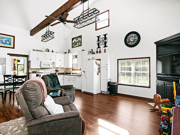 WOW! Is all you can say about this property that sits on an amazing 14.925-acre (+/-) spread of land offering the perfect opportunity to get that homestead you always dream about! The land is a scenic plot nestled in the peaceful countryside of central Kentucky while the home sits far back from the road in a private setting. The home welcomes you into an airy open floor plan sporting exposed beams and hoisting a quartet of stylish light fixtures that shine on the beautiful woodgrain floor while the array of sun-enticing windows filter soothing natural light into the room. The kitchen is an adorable area furnished with an assortment of elegant cabinetry that pairs beautifully with the tiled backsplash plus all the appliances (refrigerator, dishwasher, stove, and microwave) stay too! The first-floor features a generously sized primary suite complete with a large walk-in closet and private bath. The bathroom showcases a luxurious marble print tile floor and a huge walk-in shower caressed with more decorative tile. The first-level also has a fabulous laundry room/full bath combo for added convenience. The upstairs is a spacious loft giving you options for a spare bedroom, office, or entertainment area. Then when it's time to just sit back and relax... take your choice between the enclosed patio, the covered front porch, or the rear patio which is also great for hosting and entertaining... and this is just the home! The property also comes with a spectacular 30'X40' detached garage souped-up with a concrete floor, rows of can lights for exceptional lighting, and plenty of space for all of your tinkering jobs... Not to mention that it is also insulated, has a loft for added storage, plus a 30'X15' add-on shed for even more storage! And it doesn't stop there... You have a fenced-in area towards the front of the property that is great as a pasture for horses and other livestock, there is a creek that streams across the estate, and don't forget about the approximate acre of land dedicated to gorgeous walnut trees. But wait... there's more! Other amenities include a serviceable chicken coop, a handy storage shed with lean-to's, and not one but two 40' X 60' hoop barns with the enclosed hoop barn being the star of the show. This barn is highlighted by a sizable tack room, 5 pristine stalls, and a horse ring to provide year-round riding and training no matter the weather! This place truly has it all and call The Lancaster Agency to get it all today! ***NOTE: WE DO NOT PAY COMMISSION ON SELLER PAID CLOSING COSTS AND PRE-PAID ITEMS***