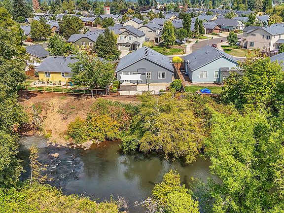 This inviting newer-built home is nestled in a quiet, desirable neighborhood with RIVER VIEWS and is walking distance of local amenities. Light, bright & move-in ready with high ceilings and a great & airy open floor plan. BRAND NEW exterior paint, luxury vinyl plank flooring & freshly-laid front sod are a bonus! The gas fireplace welcomes you in the great room that overlooks the kitchen & dining area. Kitchen features ample countertop & cabinet space, eating bar, pantry & is complete with all appliances that stay for the new owner. The generously sized primary suite has an ensuite bathroom w/ walk-in closet and is conveniently located away from the guest rooms for added privacy. Enjoy outdoor living with a vast backyard patio that overlooks the river, complemented by low-maintenance landscaping. A pre-listing inspection report & a licensed contractor receipt of completed repairs on file, as well as professionally shampooed carpets for peace of mind. Conveniently located within 25 miles of Eugene… don’t miss the opportunity to call this single-level house “home”!