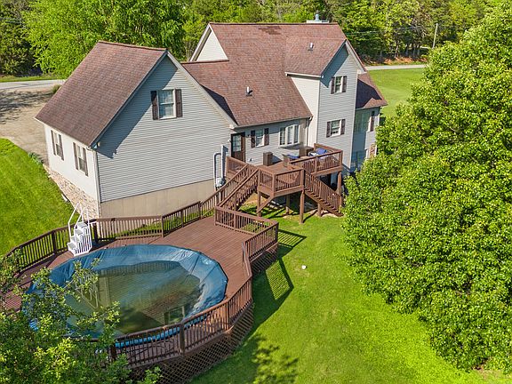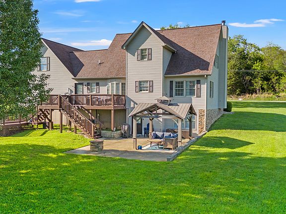 This beautifully updated and decorated 3BR/2.5BA cape cod sits on 1.61 level acres & offers incredible comfort & curb appeal. The welcoming covered front porch & lush landscape lead to a spacious 2-story foyer & updated interior. The kitchen has been tastefully updated w/granite countertops, a bar, pantry, breakfast bay, stainless appliances, & adjacent dining that opens to the living rm. A cozy gas fireplace & custom built-ins create a warm, inviting atmosphere - perfect for entertaining. The main-level primary suite is a retreat, complete w/custom walk-in closet & luxurious BA offering a tub & separate tiled shower & dual sinks. Upstairs, you'll find 2 oversized BR's + large bonus rm that could serve as a 4th BR or the ultimate teen suite. The partially finished basement provides even more living space w/a family room, rec rm & a large storage rm. Outside, enjoy fantastic entertaining options w/a multi-level deck, above-ground pool, patio & a gazebo w/ceiling fan. Car enthusiasts & hobbyists will love the oversized 2-car attached garage & separate 1-car detached garage - ideal for projects, a workshop, or storage. Located just minutes from both Irvine & Richmond for convenience.