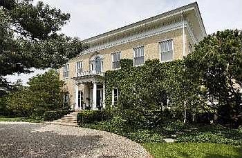 The essence of gracious liveability in a lakefront home on 2.5 acres. 5 bedrooms, 5full and 2 half baths. Fine room sizes, ceiling height, floor plan. Focus on lake views. Updated, tasteful and beautiful. Magnificent terrace leads to park-like open lawn, gardens and winding path to sandy beach. All bedrooms have private baths. Hall attic and lower level storage. 3-car garage. Historic importance and superb today.