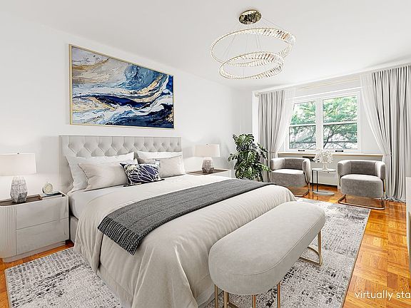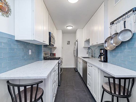 Spacious, sunny and beautifully renovated to the nines, featuring two large bedrooms, two gorgeous full bathrooms, and a large dining foyer. The stunning open Soho style kitchen boasts beautiful granite counters with integrated countertop dining, abundant custom cabinets and drawers and new stainless-steel appliances.