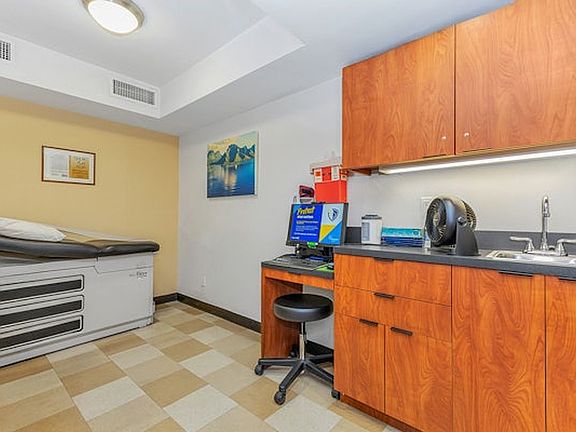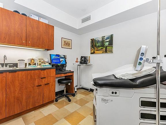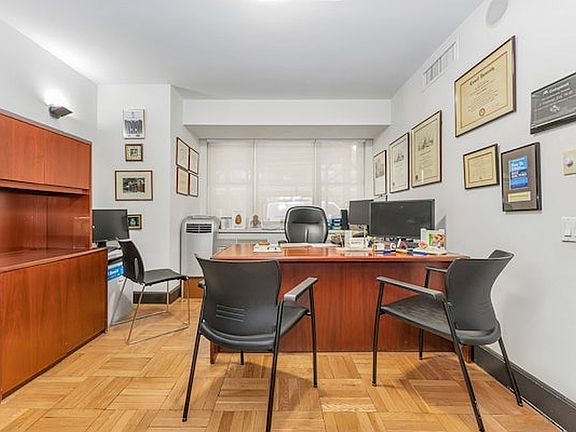 lobby, this property offers a myriad of potential as an office or live/work situation. At approximately 1,500 SF this south facing space currently has four doctor's consultation rooms, a large reception area, waiting room, storage area, kitchen and 2 baths. Thru wall AC. Building has approved changes of Certificate of Occupancy for a residential conversion, giving a creative buyer looking for a home, and/or office, the opportunity to transform this space into a 1-2 bedroom private maisonette residence with room for an office that has a private entrance from the street.
