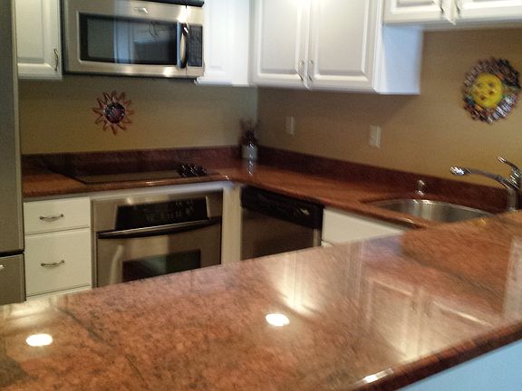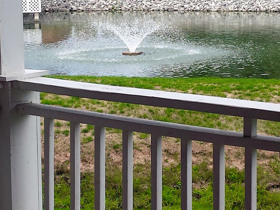 High demand 1st floor condo for sale by owner with view of the pond from your deck.Ceramic tiled foyer. Garage. Completely renovated. Kitchen w architectural ceiling,white cabs, granite countertops, granite breakfast bar, stainless kit appliances.Living room with manufactured wood flooring,gas fireplace,rec lts. Dining room with pocket door and slider to lovely deck.Entertainers dream.In unit laundry (gas hookup).Master suite w plush neutral carpet,ceiling fan, walk-in closet. Master bath w dbl sinks. 2nd bathroom w new vanity with corian counter, new faucets, tiled floor. Storage room in bldg. Sellers commission 3%
