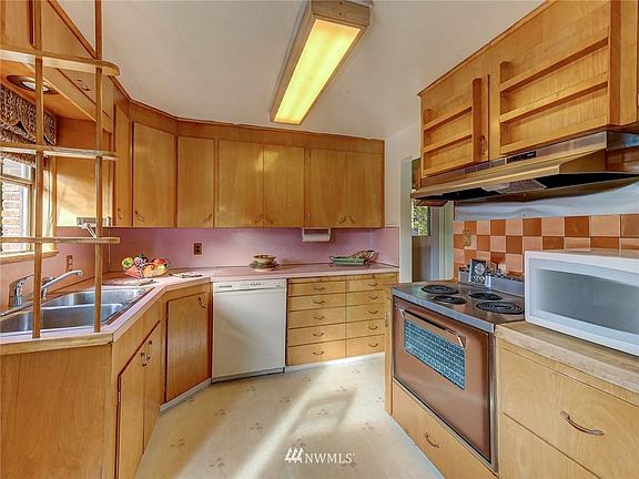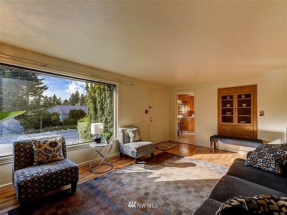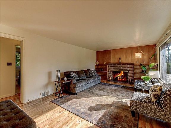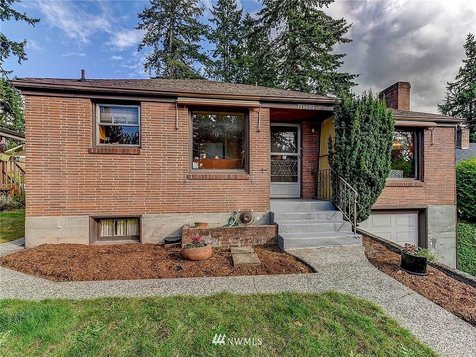 Wonderful North Seattle Brick Rambler. Mid-Century charm w/brass doorknobs, gleaming hardwoods, & built-in hutch. Living room w/brick wood burning fireplace. Kitchen w/copper back splash, oak cabinets & eating area. Main floor freshly painted. Family room, 3rd BR, storage area & laundry with 3/4 (non-conf) bath in the basement. Large lot, w/plenty of room for garden. Great location, EZ access to shops, restaurants, freeway, & future light rail. Perfect home for a down-sizer or first time buyer.