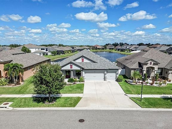 Welcome to Your Dream Home! Discover luxury, comfort, and tranquility in this stunning William Ryan masterpiece, perfectly positioned on a serene pond with breathtaking views and a fully fenced private yard. Step inside and fall in love with the spacious open-concept design, ideal for both entertaining and everyday living. The chef’s kitchen is the heart of the home, featuring premium GE Café appliances—including a built-in convection oven, induction range, and dishwasher—plus a Samsung SMART refrigerator, Culligan water filtration and softener systems, and gourmet cabinetry with abundant counter space. Enjoy casual meals in the bright breakfast nook or host unforgettable gatherings in the formal dining room. Relax and unwind on the oversized lanai, complete with a seven-person Michael Phelps Master Spa, while soaking in the peaceful pond views. If you're a gardener, you'll love this home even more, as the outside features four raised flower beds with an integrated sprinkler system to ensure proper watering. Upstairs, a large loft/bonus room offers endless possibilities—create a home theater, game room, or private office. With two luxurious master suites, each featuring bay windows, large walk-in closets, and spa-like en suites with dual sinks, water closets, and Roman soaking tubs, everyone can enjoy their own retreat. The split floor plan ensures privacy and flexibility for family and guests alike. Thoughtful details and premium upgrades abound: crown molding, elegant archways, soaring ceilings, Hunter Douglas remote blinds, custom lighting, and a whole-home indoor/outdoor surround system. Practical touches include a laundry room with GE washer and dryer, three-car garage with extra storage, and in-wall pest control. Enjoy resort-style living with community amenities like a pool, playground, and tennis courts. Conveniently located just 30 minutes from Tampa, Riverview offers top-rated schools, shopping, dining, and entertainment—with no flood insurance required! Don’t miss this rare opportunity to own a home that truly has it all. Schedule your private showing today and start living the lifestyle you’ve always dreamed of!