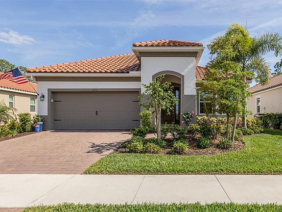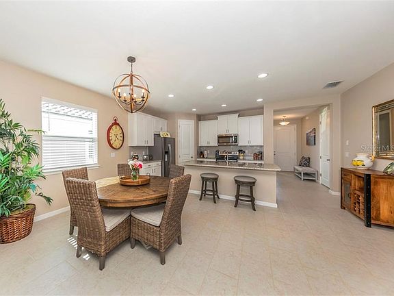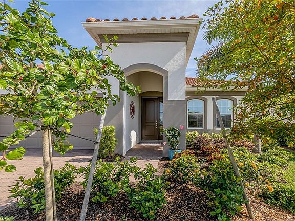This Better than new Riviera home awaits in the coveted neighborhood of Renaissance at Wellen Park/West Villages; a master-planned community with quick access to many Beaches, the new Atlanta Braves stadium, Blue Heron Park, Outstanding Golf, miles of walking/biking trails and the future Wellen Park Lakefront Downtown. This gorgeous move-in ready home boasts 3 bedrooms, 2 baths, a large den/ofice with french doors and an open concept main living area with tile floors. The kitchen offers 42" high cabinets, stainless steel appliances, granite countertops, a spacious pantry, and a large center island that comfortably seats four. With the three tiered pocket sliding door opened up you can truly enjoy indoor/outdoor living at its finest; opening the great room to the large, private screended lani overlooking your fantastic backyard and preserve. The master suite offers a light and bright space, an expansive walk-in closet and an ensuite master bath with raised dual vainity sinks, a private watercloset, plenty of storage and a spacious tiled walk-in shower. Two additional bedrooms with large closets and a guest bath with dual sinks are tucked nicely to the side of the home. Some of the many specialty finishes in this home include a tray ceiling in the master bedroom, 8' tall doors, designer lighting and fans throughout, designer interior paint throughout, a finished laundry room with 42" cabinets and a laundry sink, quality window treatments and easy-care neutral tile, a screened lani and addtional plantings. The 2 car garage has plenty of room for 2 cars and extra storage space. This Resort style gated community featuring a fitness center, playground, tennis courts, pickle ball courts and bocce courts is also maintenance free and has a low HOA of only $204 per month. Relax next to the free form heated pool with walk-in entry and lap lanes, soak your worries away in the hot tub or sit around the covered fireplace. Enjoy planned events in the gorgeous clubhouse with two cater kitchens and a coffee bar. There is something for everyone to enjoy!