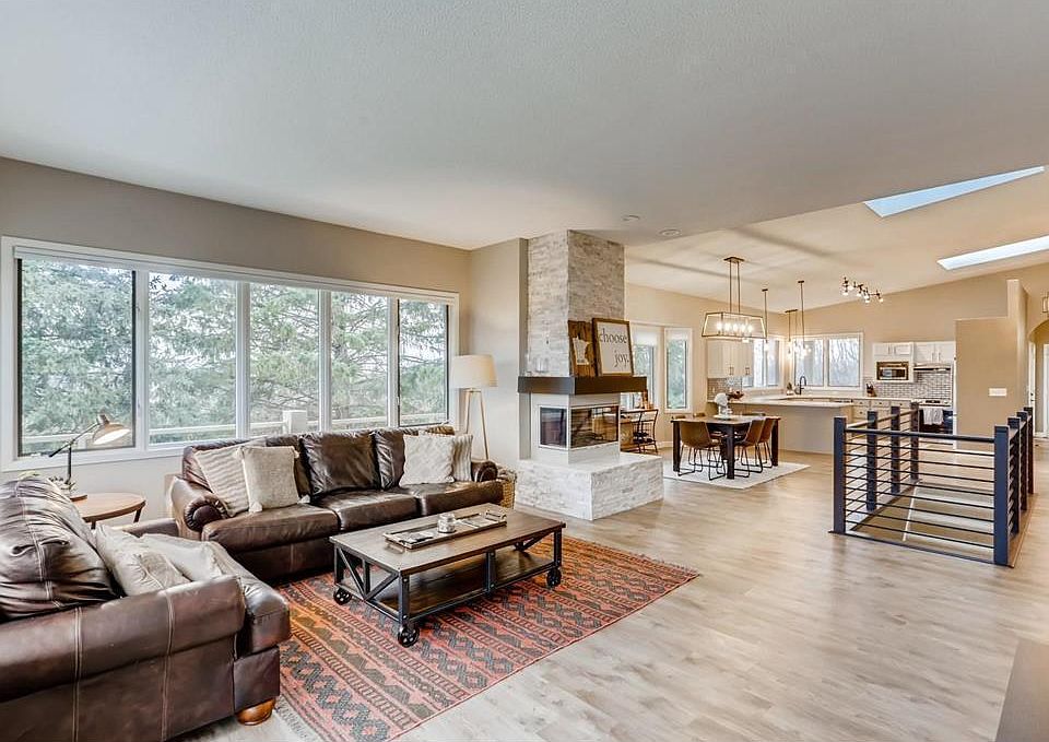 Stunning one level, end-unit townhome in Vista Highlands; a wonderful community with only 25 units located on a quiet, wooded cul de sac set atop the highest elevation in Minnetonka with convenient location & easy access to highways. This SW facing unit features massive walls of windows to showcase stunning treetop views and sunsets, plus multiple patios frSouth and West facing with many windows for warmth & natural light! Flexible floor plan so if wanted or needed all living could be on the main level! Located on the main level is a flex room that can be an office, den, library or even a formal dining room! Main level wrap around decking with large deck on lower level, both with panoramic views! The lower level features two additional bedrooms with a full bath! Sauna room with shower! Walk out to the large deck with panoramic views! Additional rooms for exercise, wine room and storage! Two three sided wood burning fireplaces! A must see home to fully appreciate the beautiful spaces.