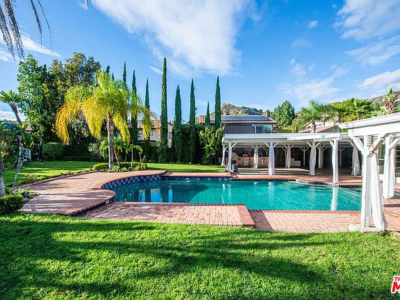 Private, gated estate at the end of a cul-de-sac on nearly half an acre of flat, usable grounds. A long private driveway leads to this impressive Porter Ranch residence featuring a spacious, open layout with soaring ceilings, recessed lighting, and multiple entertaining spaces. The chef's kitchen offers granite countertops, modern cabinetry, and Viking stainless steel appliances, opening to a large family room with a wet bar and fireplace. The dramatic spiral staircase leads to a spacious primary suite featuring a large private balcony and breathtaking views of the backyard. The resort-style backyard is designed for entertaining, featuring a beautiful pool, expansive lawn areas, a covered outdoor lounge with lighting and ceiling fans, a wooden deck, and lush, mature landscaping. Additional highlights include a three-car attached garage and extensive parking possible for RVs, boats, and multiple vehicles. A rare opportunity to own a private compound in one of Porter Ranch's most desirable pockets. New roof and new solar contract.