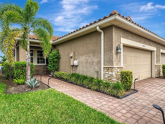"Perfect for snowbirds or full-time residents, this charming 2-bedroom villa checks all the boxes! Equipped with hurricane shutters and hurricane curtains for peace of mind during storm season, this home ensures safety without sacrificing style. Other upgrades include extended lanai, epoxy floor in garage, whole house filtration system and blue light system on the air conditioning unit. The open-concept layout features a modern kitchen and spacious living areas, perfect for relaxation and entertaining. Enjoy easy maintenance along with a serene outdoor space with added lighting on the lanai and around the palm trees where you can relax and enjoy the water view with your favorite beverage. Located in the vibrant community of Renaissance at Wellen Park and just a golf cart ride away from downtown Wellen Park which is ranked #6 best selling master planned community in the US where you can enjoy shopping, restaurants, entertainment and so much more. Don't miss this opportunity to own your piece of paradise!