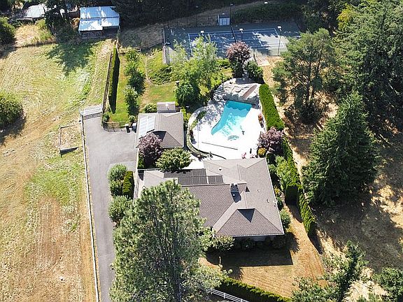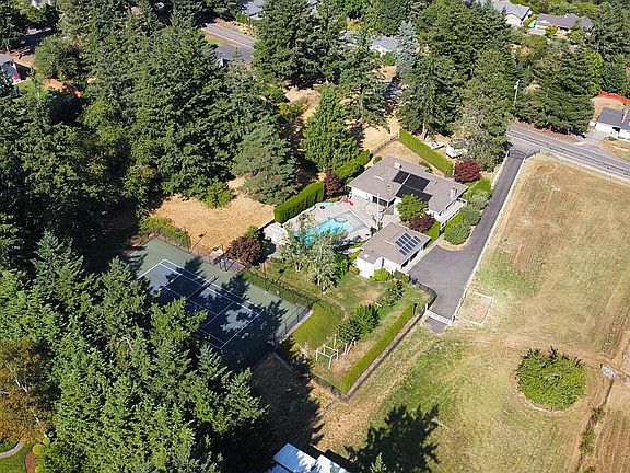 Hard to find, rare property on top of hill zoned R10 with well built and maintained home on approximately 3.21 acres with pool, water feature, sports court, fully fenced and gated. Includes barn, orchards, (2) RV parking/hook up. Preliminary layouts for up 18 lots on the combined properties with 11725 SE Idleman to the south, listed separately.