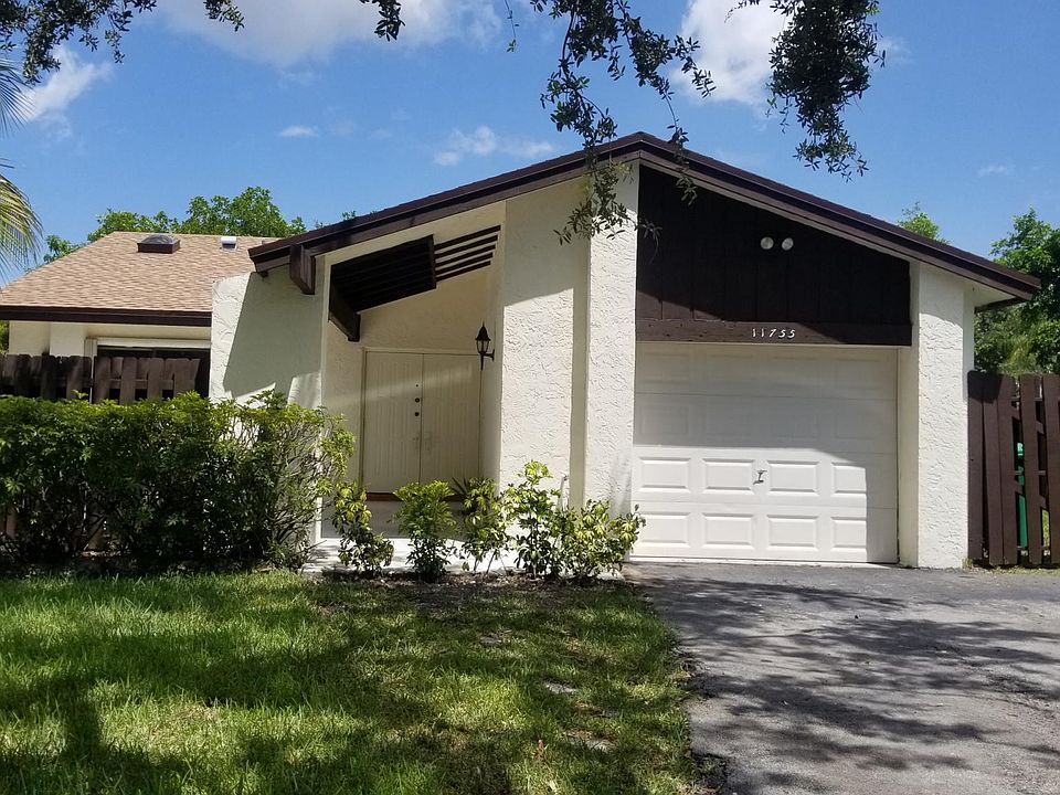 Kendall Crossings single family home. 3 bedroom, 2 bath. Vaulted ceiling, walk in closet. Tile throughout. Screened in patio. Accordion storm shutters. Just painted. Magnificently located on the pool grounds and large green area and on a cul-de-sac. Walk to Crossings Country Club and its multiple amenities that include a gym, pool, tennis courts, etc. Close to shops. Lawn Maintenance included! Great family oriented neighborhood!. Excellent schools! Year lease