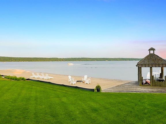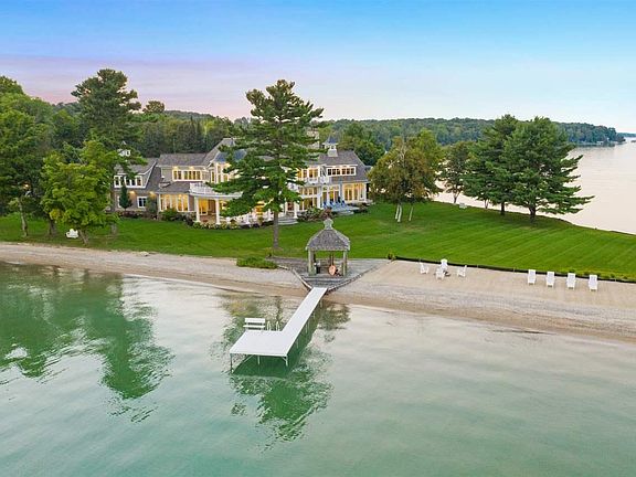 The most distinctive property on one of the most beautiful lakes in the world as designated by National Geographic now has the most beautiful estate available to purchase, Sand Point. This magnificent architectural masterpiece on 2.95 acres, with gated entry, is situated on Sand Point overlooking beautiful Torch Lake with lake views from almost every window. Designed to make the most of the outdoors, this estate boasts 1100 feet of waterfront with stone patios, private decking and your very own park. Waterfront has a beautiful sandy beach area and stone retaining walls and docks. Luxurious chef's kitchen with Carrera marble countertops, backsplash, island and prep kitchen/pantry adjoining. Wolf range, double oven + warming oven, 2 Bosch dishwashers and Subzero refrigerator. Under cabinet floor and theater lighting. Main level flooring is rift & quartered White Oak all with in floor heating. Visual Comfort lighting throughout. Pella windows with highest UV rating. Imported marble flooring and Toto toilets in 7 bathrooms. 1st floor Master Wing is an owner's private oasis. Calcutta marble flooring in master bath, walk-in closet and a wet bar. There are a total of 5 bedrooms (all en-suite) and 2 extra half baths. The home has 5 fireplaces, an elevator and generator. Every element has been painstakingly planned, every aspect beautifully considered; this remarkable family home unfolds with perfection, passion and poise.