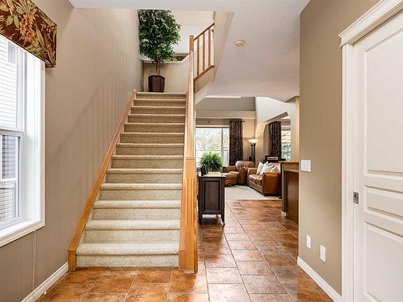 Set within the highly sought-after lower Valley Ridge community, this beautifully maintained residence combines timeless elegance with everyday comfort — just minutes from the Valley Ridge Golf Course, scenic pathways, and the Calgary West Farmers Market. From the moment you arrive, the home’s grand curb appeal and lush landscaping make a lasting impression. The pristine east-facing backyard is a private oasis featuring a sun-shaded patio with awning, privacy screens, outdoor speakers and a meticulously cared-for garden — the perfect retreat for morning coffee or evening gatherings. Inside, a spacious foyer opens into a bright, airy living room with soaring two-storey 18' ceilings and a gas fireplace. The open-concept layout flows seamlessly into a generous dining area and a well-appointed kitchen with abundant cabinetry, stainless steel appliances (including a new microwave- 2025), breakfast bar, and large walk-in pantry. A private office off the dining area provides an ideal work-from-home space, while the mudroom adds everyday convenience. The double attached garage is insulated, drywalled, finished with an epoxy floor and has hot and cold water taps. Upstairs, discover three large bedrooms, each with its own walk-in closet. Sunlight floods the home through the open-to-below design and large skylight, creating a warm, inviting ambiance. The primary suite is a true retreat, offering a spacious bedroom with vaulted ceilings, sunny south exposure, large walk-in closet, and a 5-piece ensuite with dual vanities, a soaker tub, and a separate shower. Completing the upper floor is an additional 4pc bathroom and large laundry room with built-ins and laundry closet. The fully developed lower level expands your living space with three distinct entertaining zones perfect for a theatre room, games area, and fitness space, plus a cozy corner fireplace and a charming library closet complete with floor-to-ceiling built-ins. Additional features include a water softener, new hot water tank (2024), fresh paint throughout the main floor (2025), new washer/dryer (2025) and newly resealed aggregate driveway (2025). Step outside your front door and enjoy the beauty of Valley Ridge’s extensive trail network — perfect for evening strolls, morning jogs, or peaceful walks along the river valley. Lovingly cared for by the same family for nearly two decades, this home has been the backdrop to countless cherished milestones. Now, it's ready for new memories to be made. Experience the unmatched combination of comfort, character, and location that makes Valley Ridge one of Calgary’s most desirable communities.